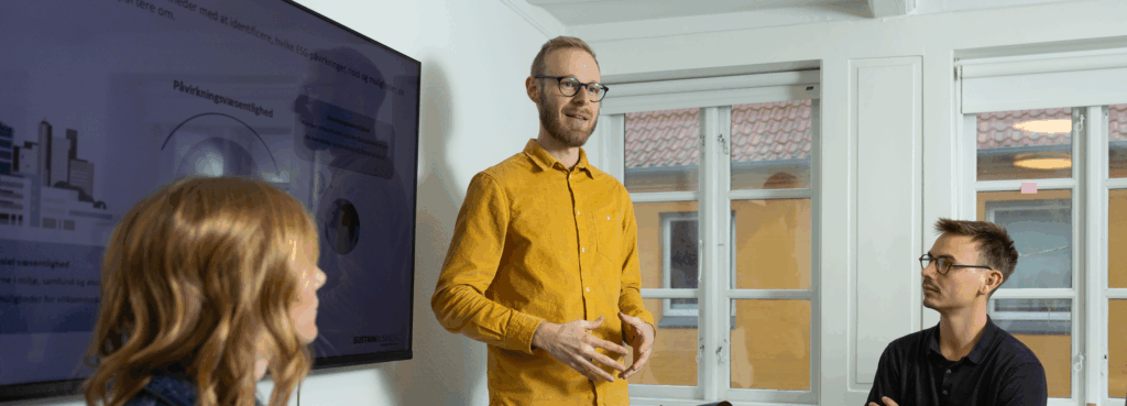 Skal I løfte ESG-kompetencerne i organisationen? Ønsker I, at ledelse, nøglepersoner eller hele medarbejdergruppen forstår CSRD, ESG og bæredygtighed? Har I brug for inspiration og fælles retning på ESG-dagsordenen? Så hjælper vi jer med at tilpasse det rette format, fra oplæg og workshops til læringsforløb og løbende sparring. I får en klar forståelse af ESG, CSRD og den øvrige EU-lovgivning, forklaret på en enkel og forståelig måde. Det skaber øget engagement og ejerskab i forhold til virksomhedens bæredygtighedsarbejde, og bidrager samtidig til et fælles sprog og en tydelig retning internt i organisationen. I får konkret læring, der kan omsættes direkte i hverdagen, og et format, der tilpasses jeres behov. Uanset om I har brug for et inspirerende kick-off eller en mere dybdegående faglig udvikling, tilrettelægges forløbet, så det giver mest mulig værdi for jer. Et bæredygtighedskursus giver jer viden og indsigt, men også konkrete fordele: Vi gør komplekse krav enkle at forstå og anvende. Alle kurser tager udgangspunkt i jeres virkelighed, jeres branche, størrelse og modenhed. Vores undervisning kombinerer faglighed, dialog og øvelser, så deltagerne går hjem med ny viden, energi og konkrete værktøjer.Er et bæredygtighedskursus relevant for jer?