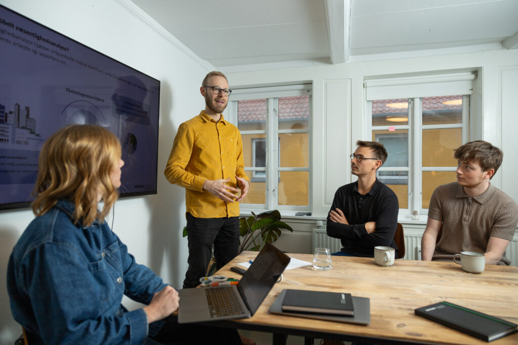 Hos os møder I en fleksibel og branchetilpasset tilgang, der tager udgangspunkt i jeres konkrete virkelighed. Vi arbejder i øjenhøjde og sikrer, at både forretningsmæssige behov og gældende lovgivning bliver tænkt med. Med en stærk kombination af dybdegående ESG-kompetencer, praktisk erfaring og strategisk forståelse hjælper vi jer med at navigere sikkert og effektivt i den grønne omstilling